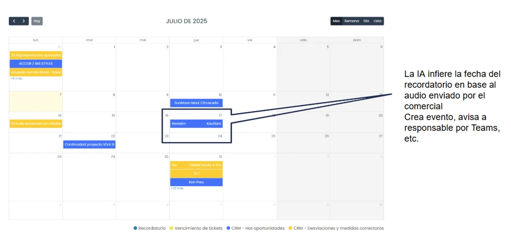 La innovación no está en obligar al equipo a cambiar su forma de trabajar, sino en facilitarla. Los vendedores ya utilizan WhatsApp a diario para comunicarse con clientes y compañeros. Lo único que necesitan, al salir de una reunión, es grabar un breve audio con los puntos clave de lo que ha ocurrido: qué necesita el cliente, qué producto le interesa, cuándo conviene hacer el seguimiento.