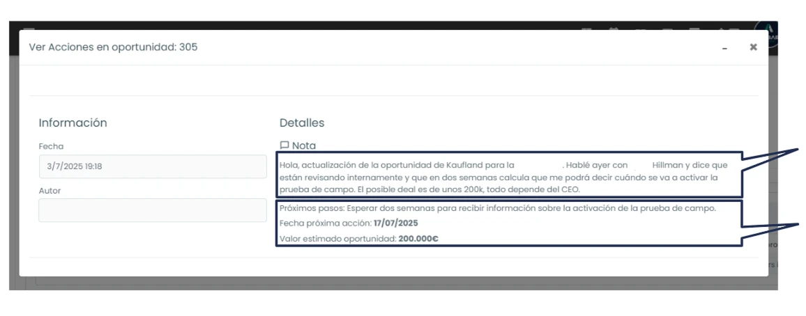 We also develop additional AI-powered functionalities that complement our solutions: automatic meeting summaries, classification of opportunities by urgency level, and even suggested next steps for the sales team.