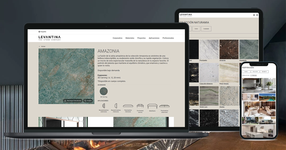 En colaboración con Levantina, empresa líder en soluciones naturales y superficies de piedra, desarrollamos un proyecto de digitalización: Levantina Hub, una plataforma corporativa unificada y escalable que centraliza la gestión de contenidos web, la operativa comercial y la experiencia digital de clientes y equipos.